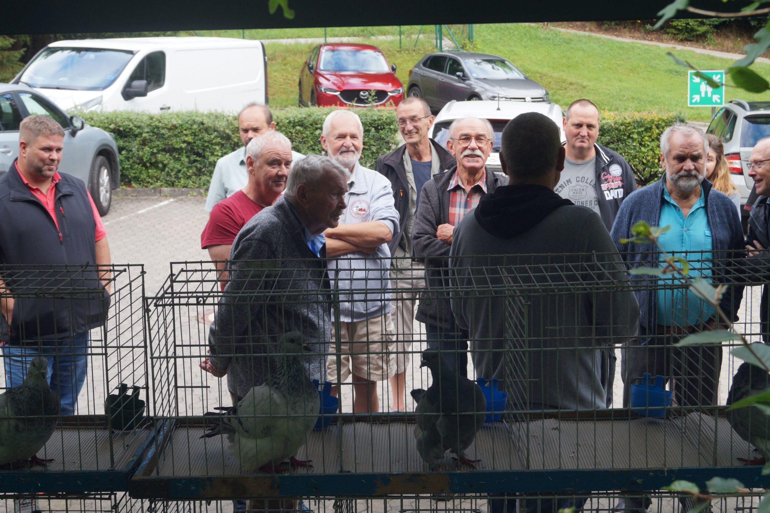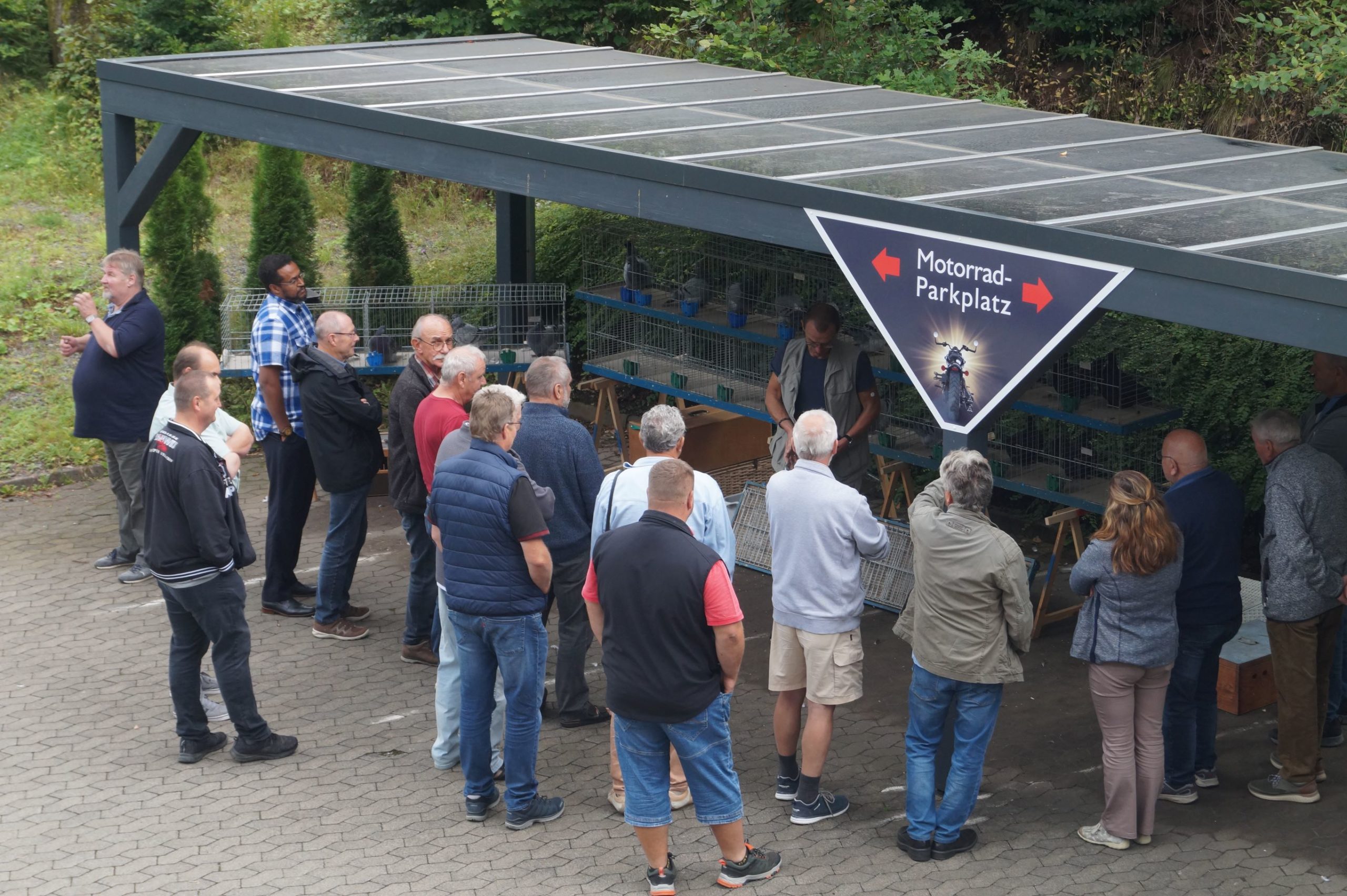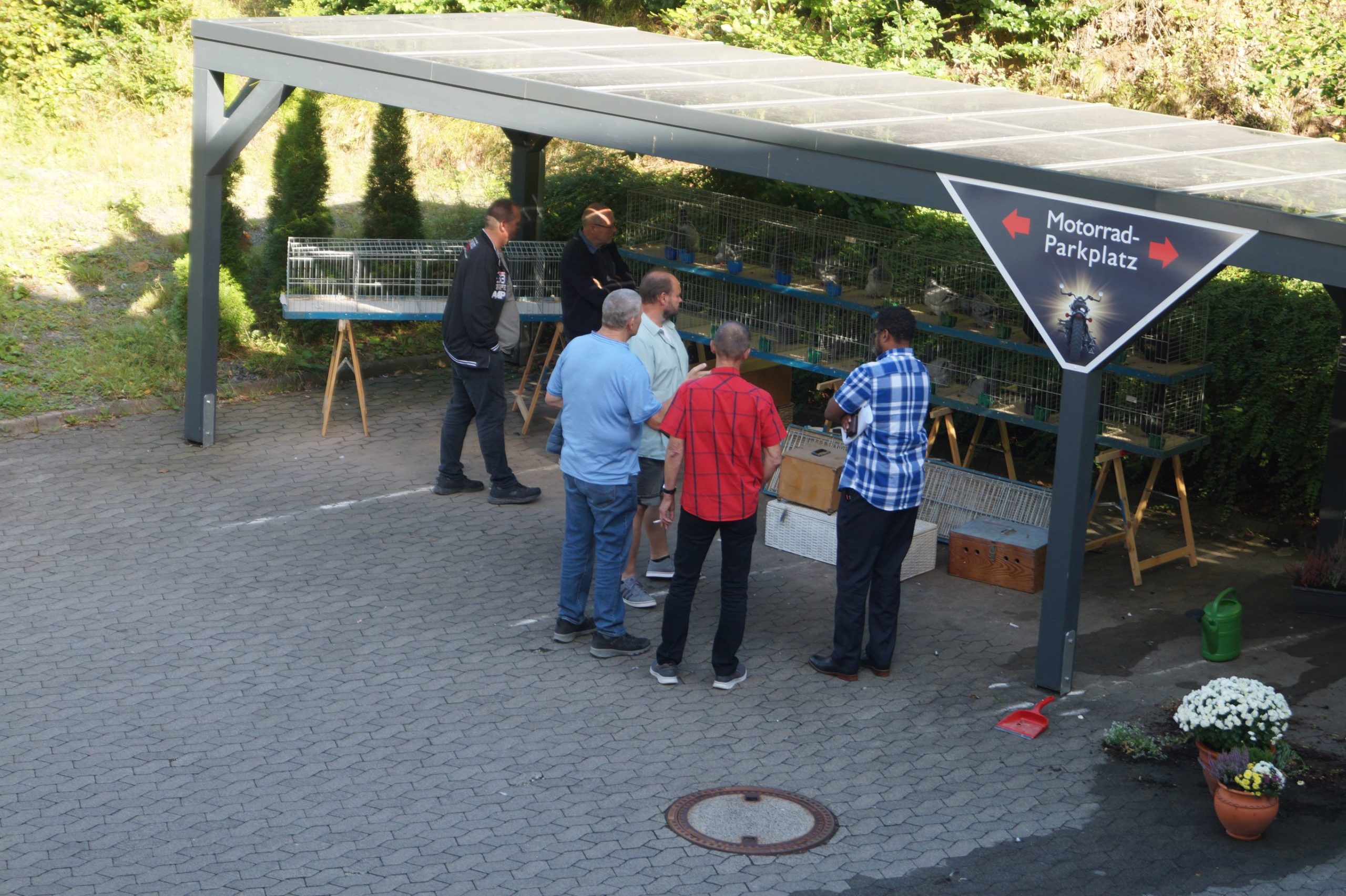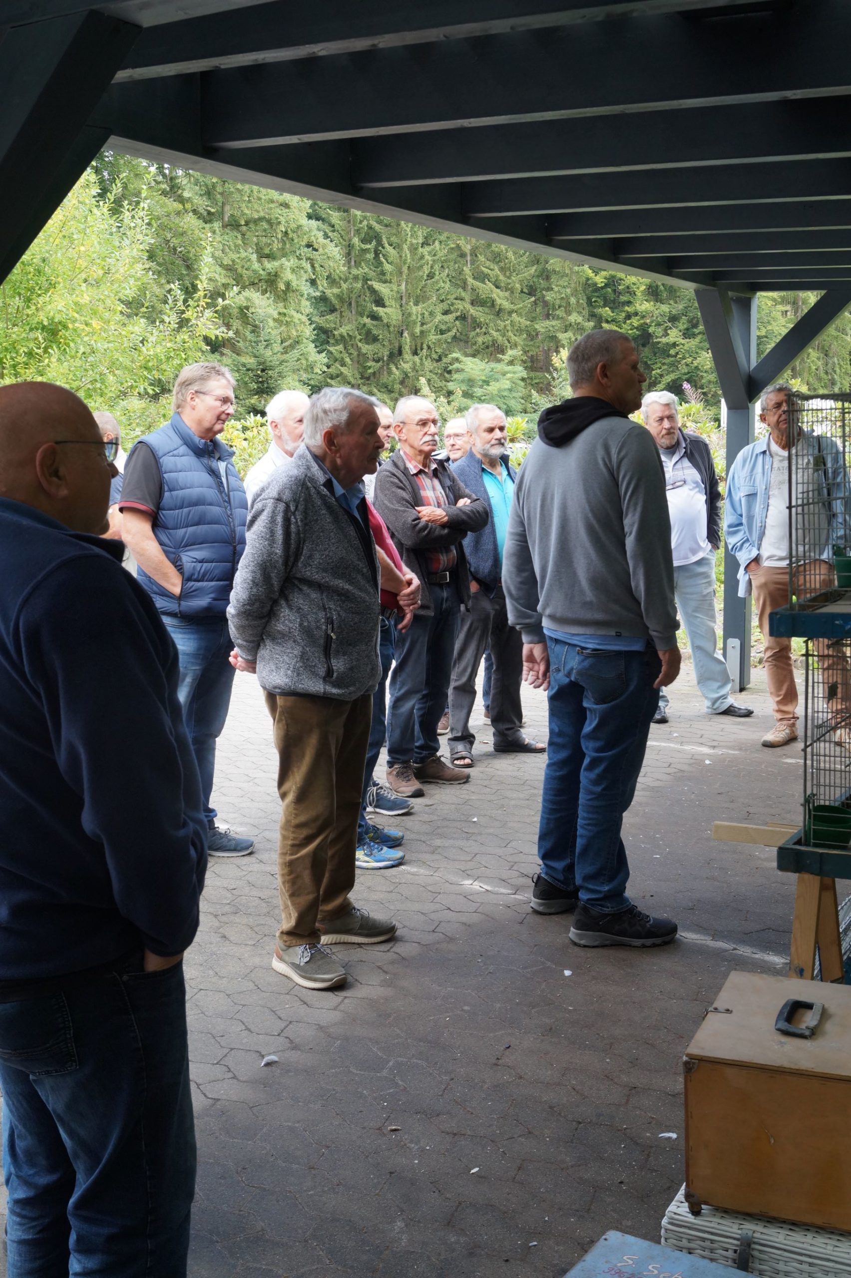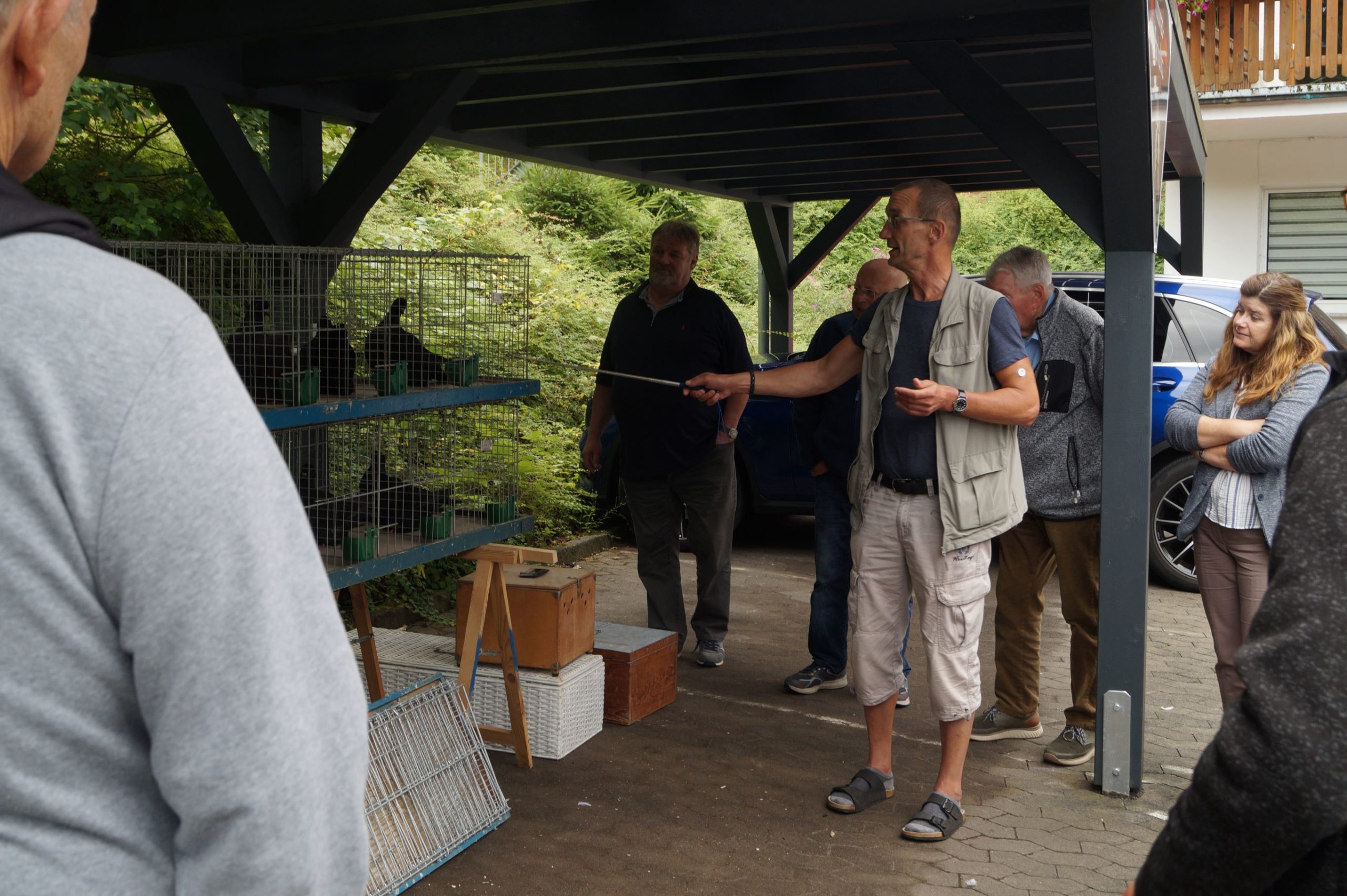 Am Samstagmorgen nach einem ausgiebigen Frühstück fuhren unsere mitgereisten Damen in die Stadt zum gerade stattfindenden weithin bekannten Stadtfest. Nachdem so gegen 10 Uhr auch die letzten Jungen in den Käfigen standen, begaben sich die Zfr. gespannt und erwartungsfroh zur Tierbesprechung. Insgesamt 22 Tiere, davon auch 2 Romagnoli blaugehämmert zeigten sich unseren PR‘s. Mondain in schwarz, blau mit Binden, blauschimmel und blaugehämmert konnten besprochen werden. Als PR fungierten Dietmar Benz, Heiko Laaß und Gustl Heftberger. Dietmar wies nachdrücklich daraufhin, dass eine JTB nicht mit einer Bewertung der Tiere bei einer Schau verglichen werden darf. Bei einer JTB soll und muss kritisiert werden, Fehler sollen aufgezeigt werden und den Züchtern vermittelt werden, ob das Tier für kommende Ausstellungen und/oder die nächste Zuchtsaison brauchbar ist. Nach gut 1,5 Stunden war die JTB beendet und die PR zogen sich zurück, um sich über die besten 3 Tiere abzustimmen. Die Ergebnisse werden beim Züchterabend bekannt gegeben.