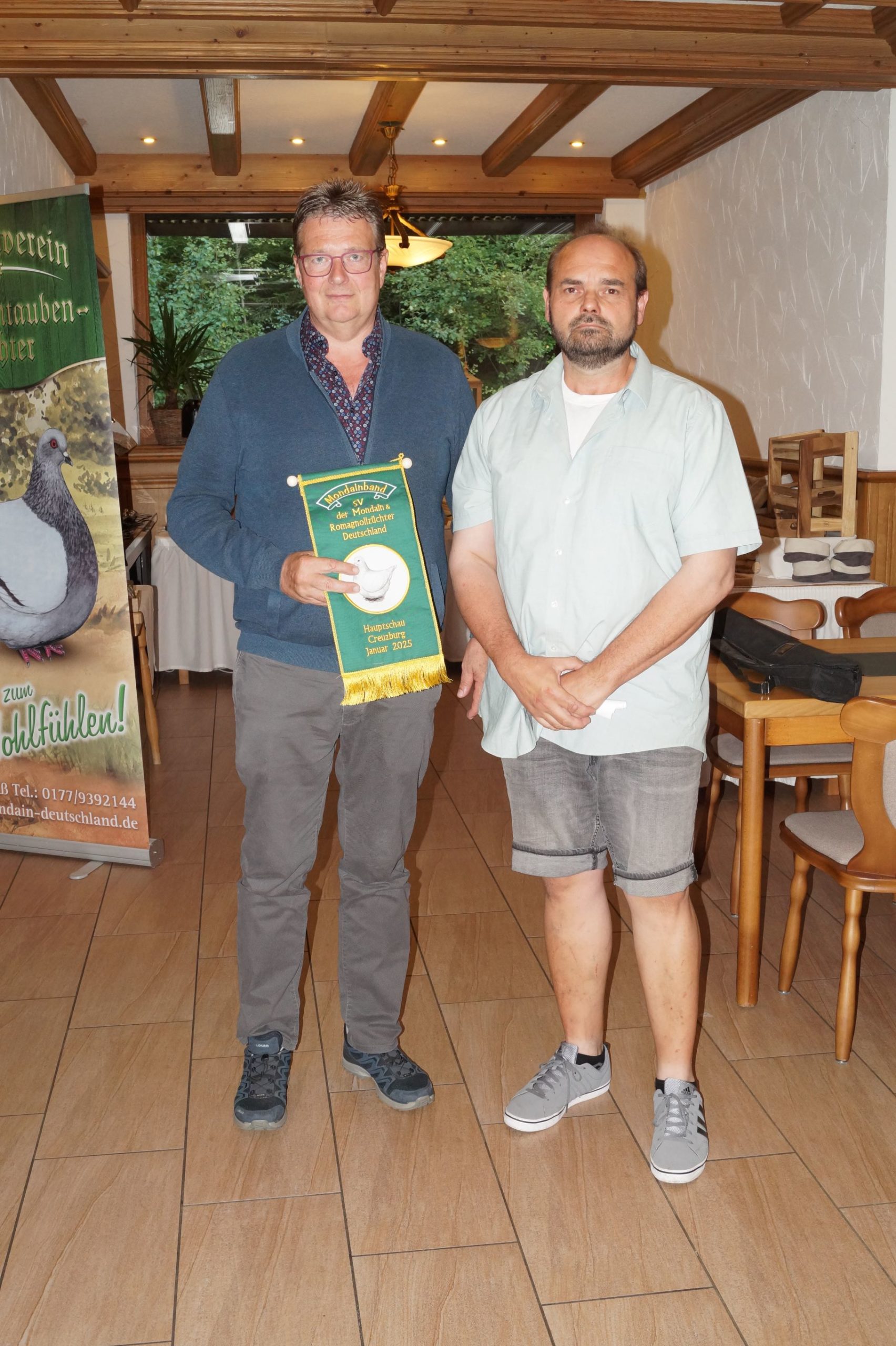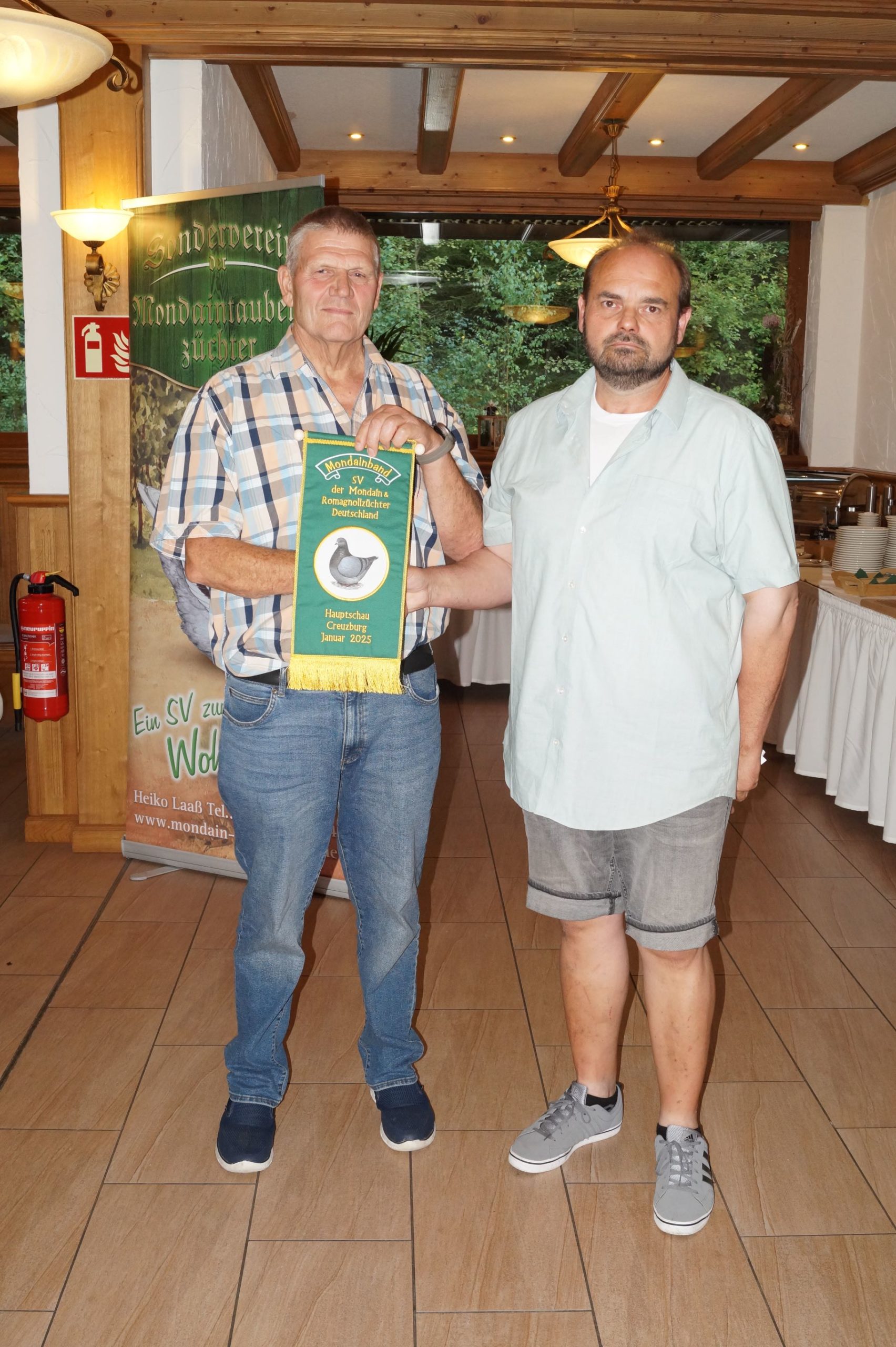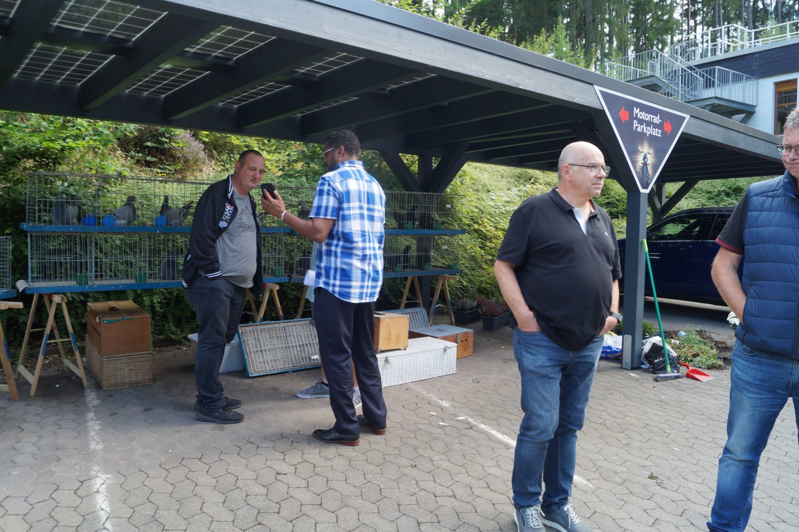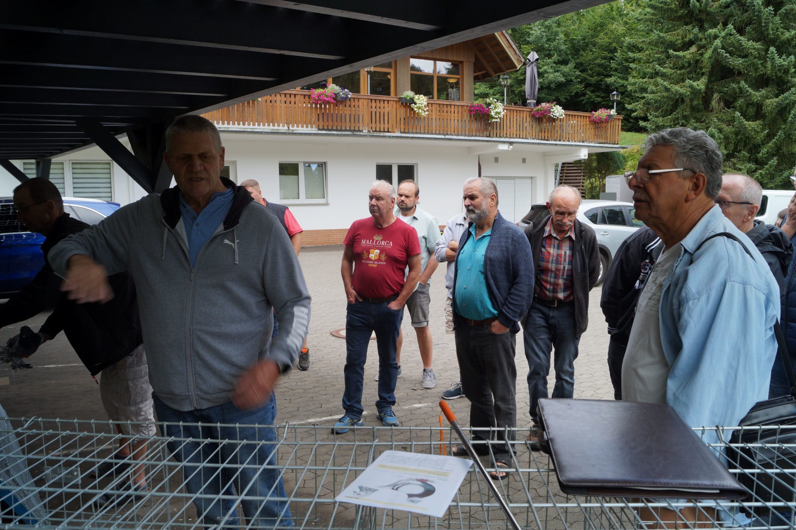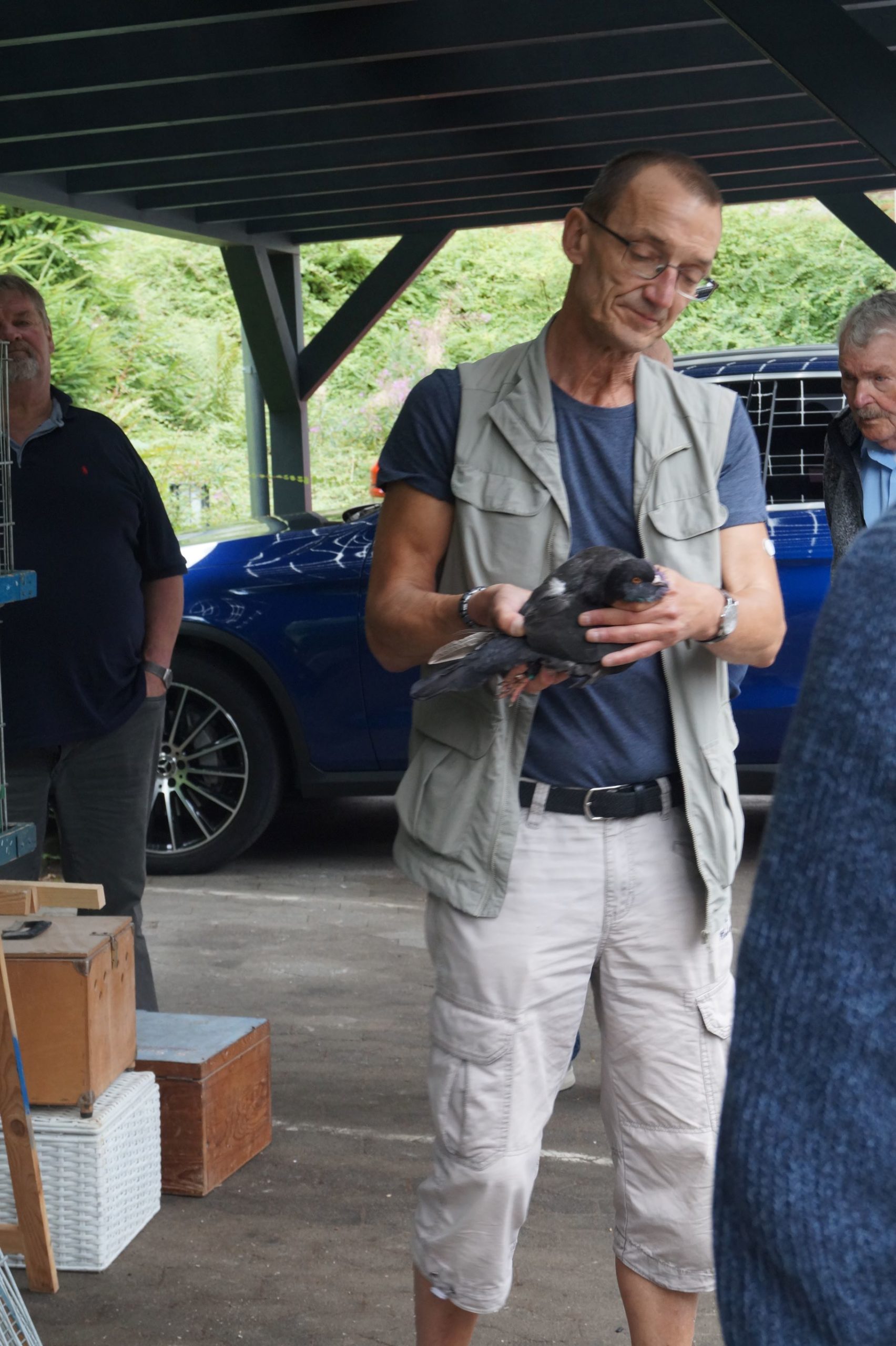 Am Samstagmorgen nach einem ausgiebigen Frühstück fuhren unsere mitgereisten Damen in die Stadt zum gerade stattfindenden weithin bekannten Stadtfest. Nachdem so gegen 10 Uhr auch die letzten Jungen in den Käfigen standen, begaben sich die Zfr. gespannt und erwartungsfroh zur Tierbesprechung. Insgesamt 22 Tiere, davon auch 2 Romagnoli blaugehämmert zeigten sich unseren PR‘s. Mondain in schwarz, blau mit Binden, blauschimmel und blaugehämmert konnten besprochen werden. Als PR fungierten Dietmar Benz, Heiko Laaß und Gustl Heftberger. Dietmar wies nachdrücklich daraufhin, dass eine JTB nicht mit einer Bewertung der Tiere bei einer Schau verglichen werden darf. Bei einer JTB soll und muss kritisiert werden, Fehler sollen aufgezeigt werden und den Züchtern vermittelt werden, ob das Tier für kommende Ausstellungen und/oder die nächste Zuchtsaison brauchbar ist. Nach gut 1,5 Stunden war die JTB beendet und die PR zogen sich zurück, um sich über die besten 3 Tiere abzustimmen. Die Ergebnisse werden beim Züchterabend bekannt gegeben.